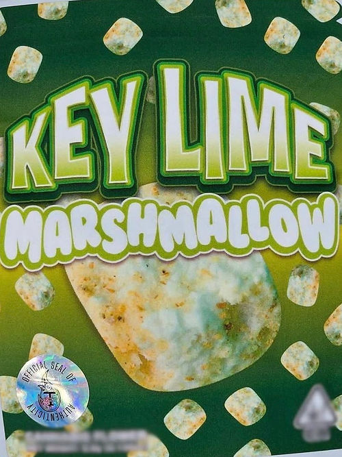 Key Lime Pie is just as tasty as it sounds! This indica dominant hybrid (75% indica/25% sativa) strain is a phenotype of the ever-popular Girl Scout Cookies strain and boasts a moderate THC level f 19-22%. Smoking Key Lime Pie will give you an intense onset of feeling stoned followed by a mellow, lucid high with cerebral clarity. You’ll be couch-locked and slightly drowsy but have an insane sense of creativity and focus. Because of these effects, Key Lime Pie is ideal for treating manic depression, insomnia, and stress disorders, including PTSD. With a minty, candy-like taste with a smoky lime aftertaste and a chocolate cream scent, Key Lime Pie may seem to he ideal for novice users. Don’t be fooled – it tends to overwhelm newer patients due to the deceptively sweet taste and moderately high THC level. As long as it’s taken in small doses, users of all experience levels should be fine. Key Lime Pie has a dense green furry body with traces of purple and a resinous base – it looks as good as it tastes!. Key Lime Marshmallow