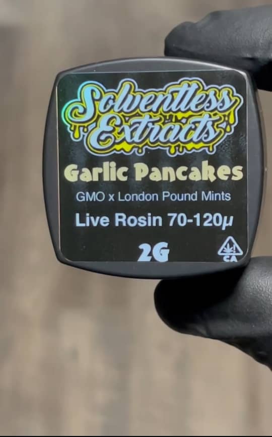 Garlic Pancakes is the cross of Garlic Cookies (a.k.a. GMO) x London Pound Mints, this strain is known for earthy, sweet aromas with hints of citrus, mint and spice. This Indica-leaning hybrid has wonderfully calming, soothing effects with a tingling body buzz and plenty of knockback.
