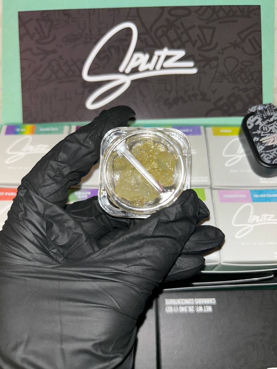 Splitz live resin diamond extracts 3.5grams jars are the THCa diamonds that form in live resin terp sauce, appearing as crystallized solids. THCa is the precursor to THC, the cannabinoid that gets us high. When you apply heat to THCa, it turns into THC. Diamonds are 99.9% pure THCa, meaning consuming them will get you absolutely blitzed.